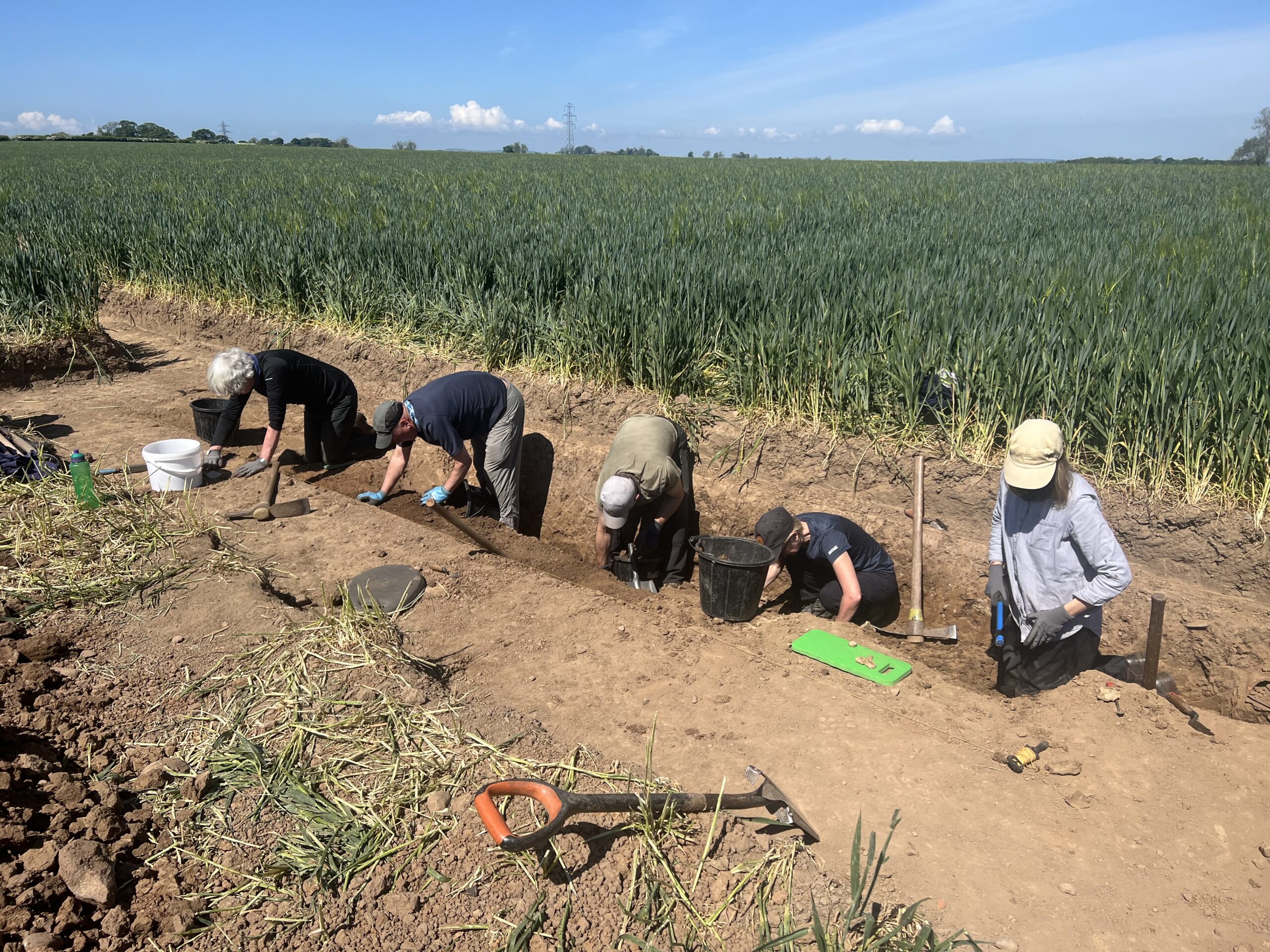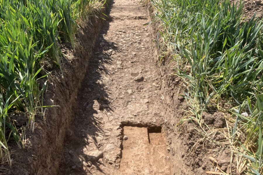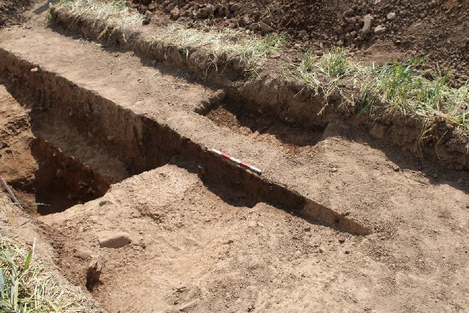 The results of the geophysical survey were used to inform a programme of excavations. Five long, narrow trenches were opened, positioned to target some of the anomalies identified through geophysical survey.