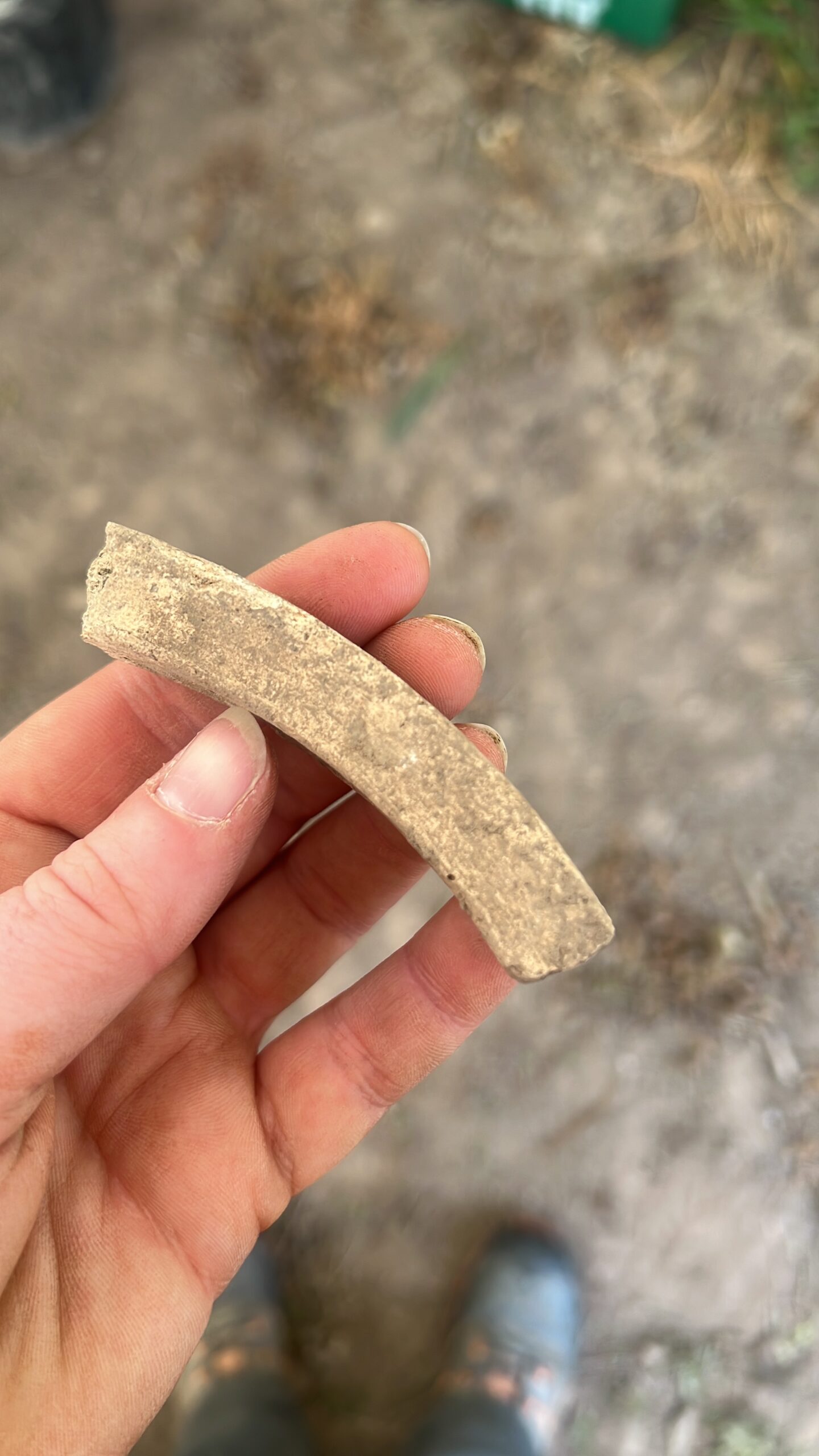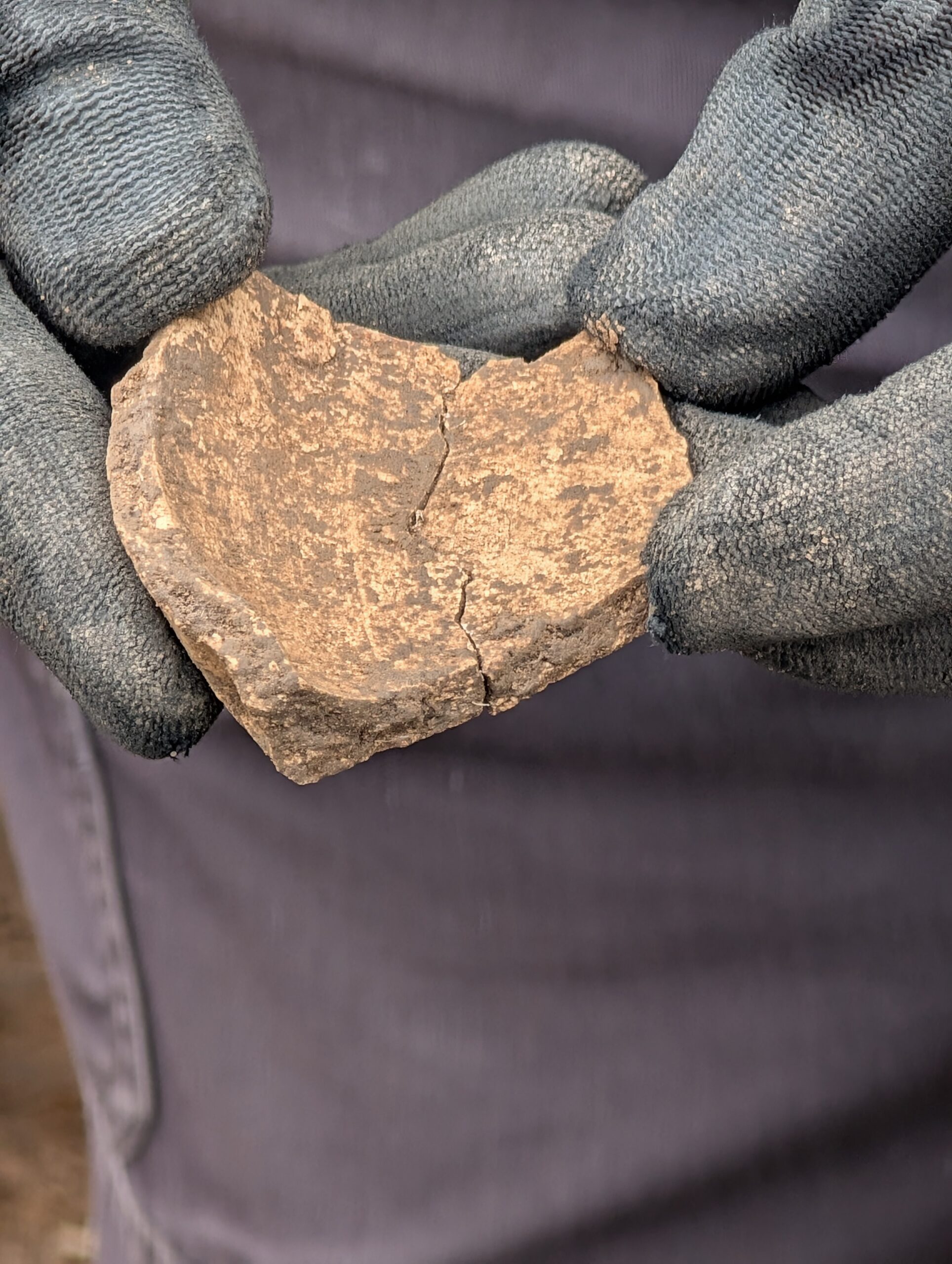 Also within Trench 1 were traces of a linear feature cut into the natural subsoil, with possible later prehistoric pottery in its fill, has been tentatively identified as a prehistoric feature, perhaps a small section of a gully. Although only a small section survives it has been tentatively speculated that the gully could be all that remains of a ring-ditch or drip gully relating to a prehistoric structure. The site’s position, sitting on a flat terrace overlooking the surrounding land near the Horndean and River Tweed, would have been a sought after settlement location from prehistory onwards.