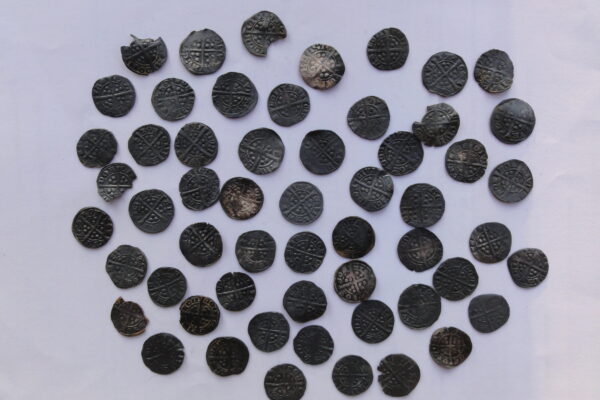 In 2014 local metal detectorist David Bartholomew (along with colleagues) found 59 Edward I silver pennies near Drumelzier by the Tweed. The wider landscape here is rich in archaeological activity with sites from prehistory as well as the medieval site of Tinnis Castle built into an early medieval hillfort.