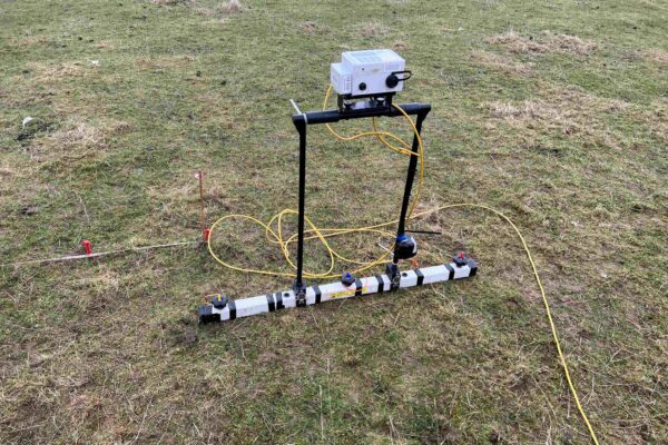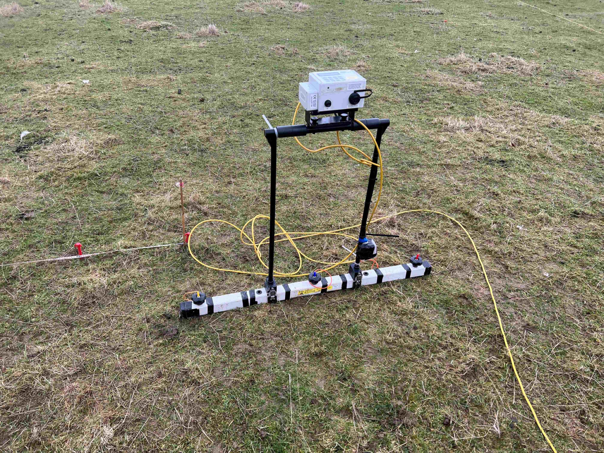 Resistivity survey is a technique that measures electrical resistance below the ground and is good at picking up sub-surface anomalies such as buried ditches (low resistance) and walls (high resistance).