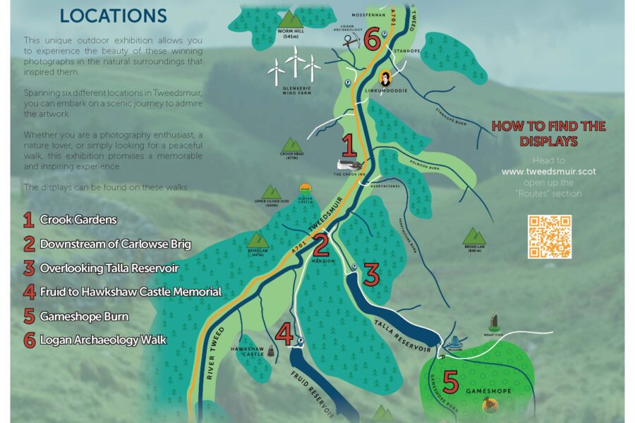 You can explore these inspirational images – and the landscapes that inspired them – at Carlowse Brig, Talla Reservoir, Gameshope, Logan Burn and Fruid Reservoir.