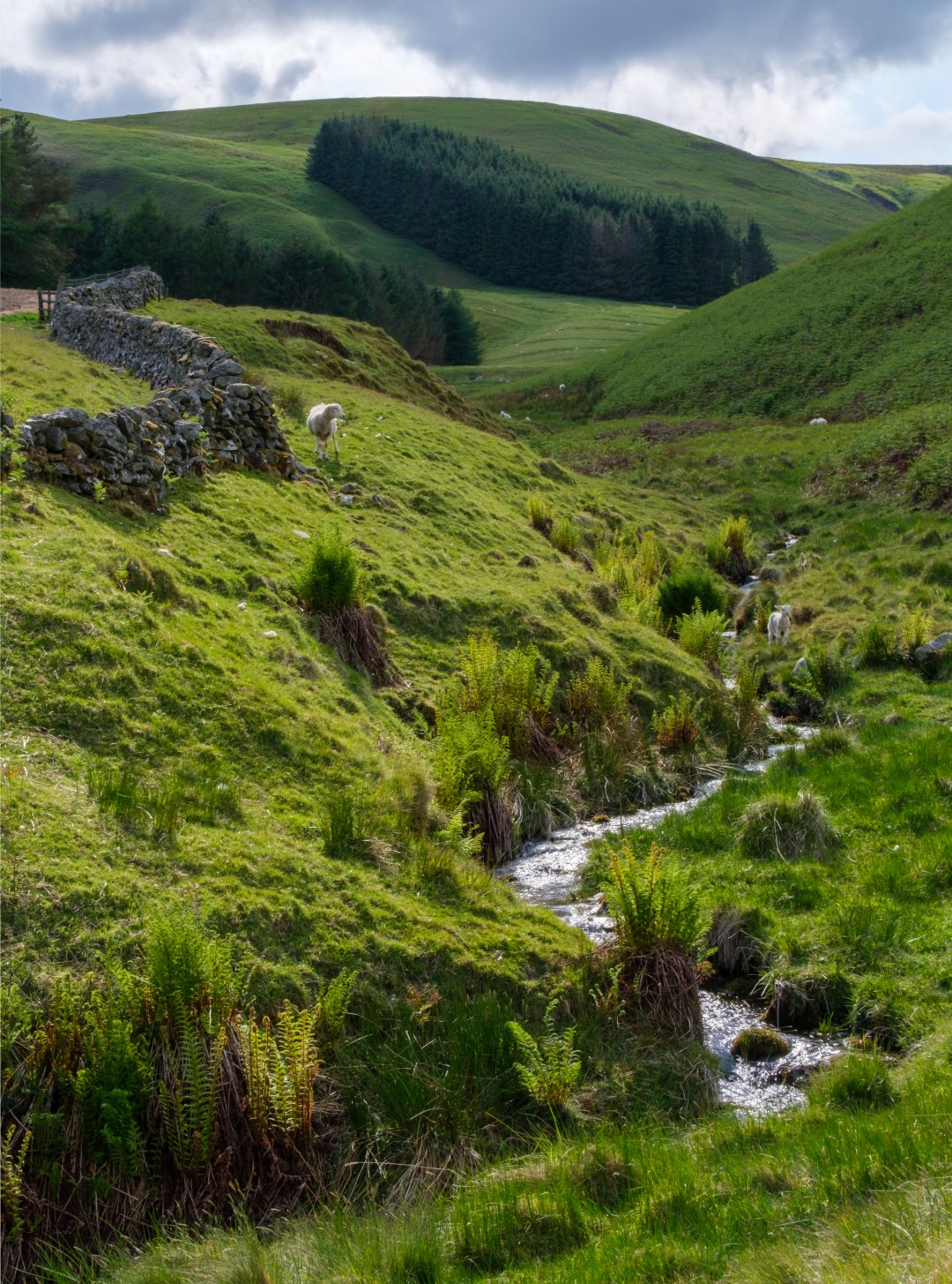 “This is land I have farmed for the past 48 years. I waited for a day and time when the light was right to illuminate the water and the clumps of ferns on the banks of the burn.”