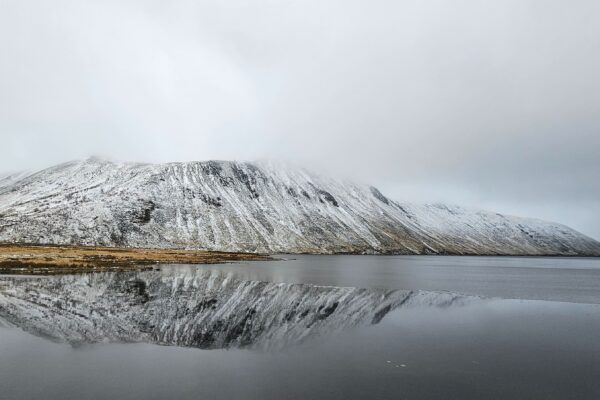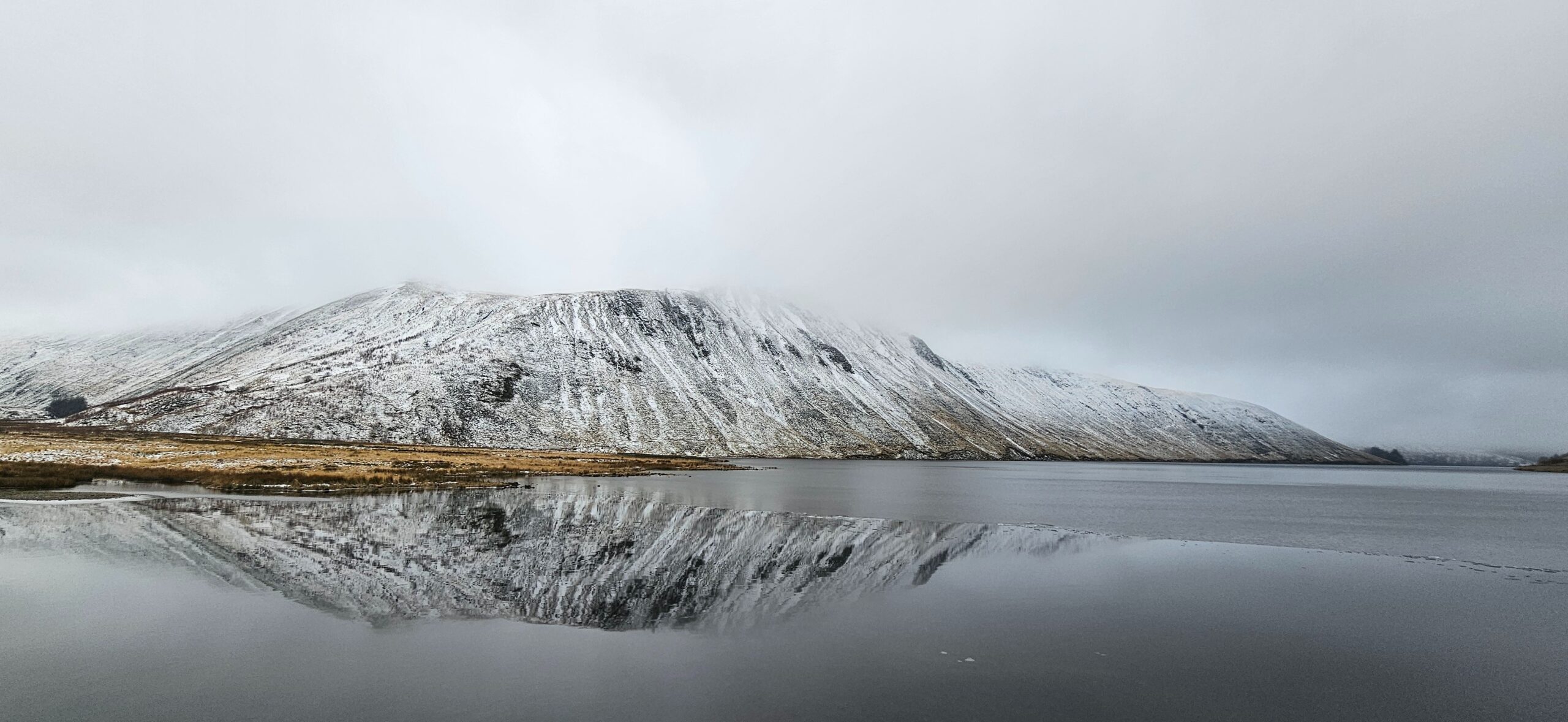 “The sharpness of the reflection on the ice sheet compared to the water of the reservoir was striking and led to a sense of stillness in the landscape.”
