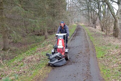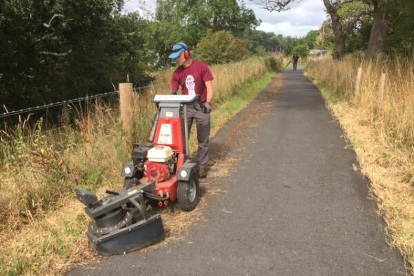 The Tweed Valley Railway Path follows a picturesque route along the Tweed, providing a traffic-free connection between Peebles and nearby Cardrona. This quiet and smoothly surfaced route is well-used for walking, cycling and wheeling – and this shared usage makes it particularly important that the full width of the path is available. PPG works to clear vegetation encroaching on the edges of the path. Thanks to the purchase of a hydraulic two-wheel tractor with weed wiper head, PPG can now work much faster and more efficiently.