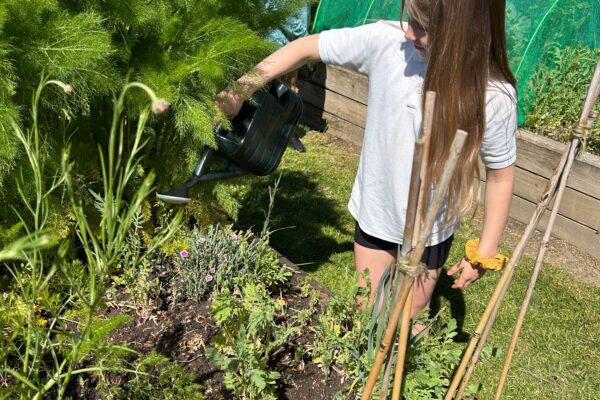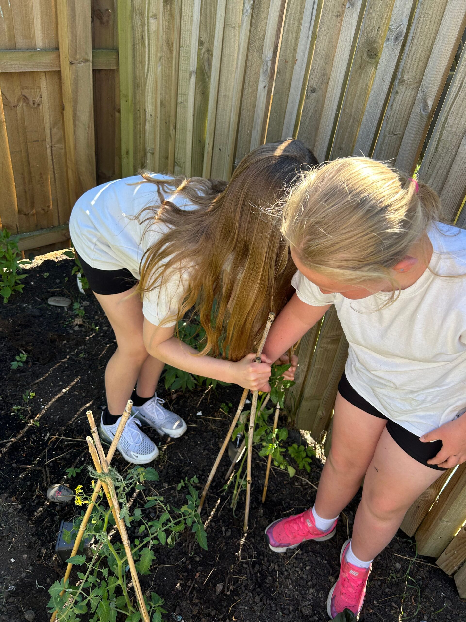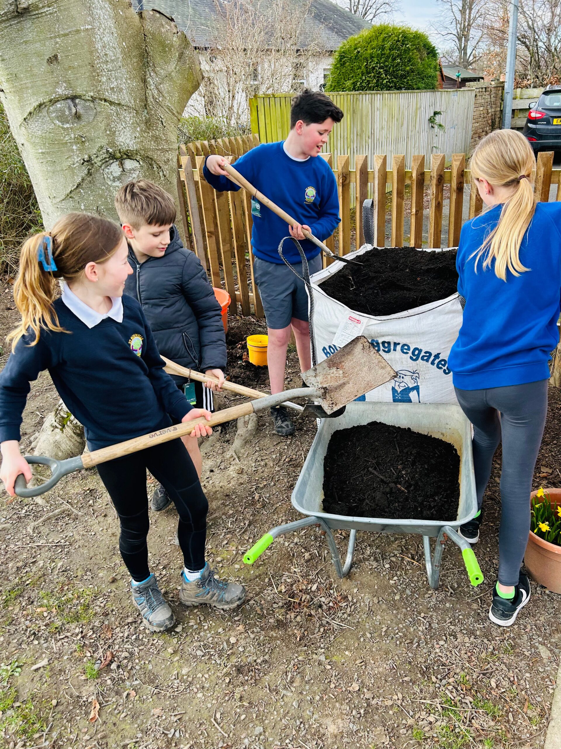 With the arrival of new equipment early in 2025, The Eco Team set to work digging new beds, filling existing beds, and beginning preparatory work that would reap benefits in the spring. The children, and the now growing number of adult volunteers involved, learned about the different types of tools and how they are used, and also how to clean and store them to keep them in top condition. Knowledge and skill progressed through the academic year, children showed their peers who to use the tools, and they can now be reliably asked to fetch a specific tool from the shed and know exactly what to collect. As the year went on and plant recognition skills continued to grow, the Eco Warriors were able to work through weeding and planting tasks independently.