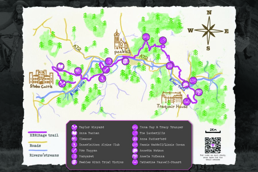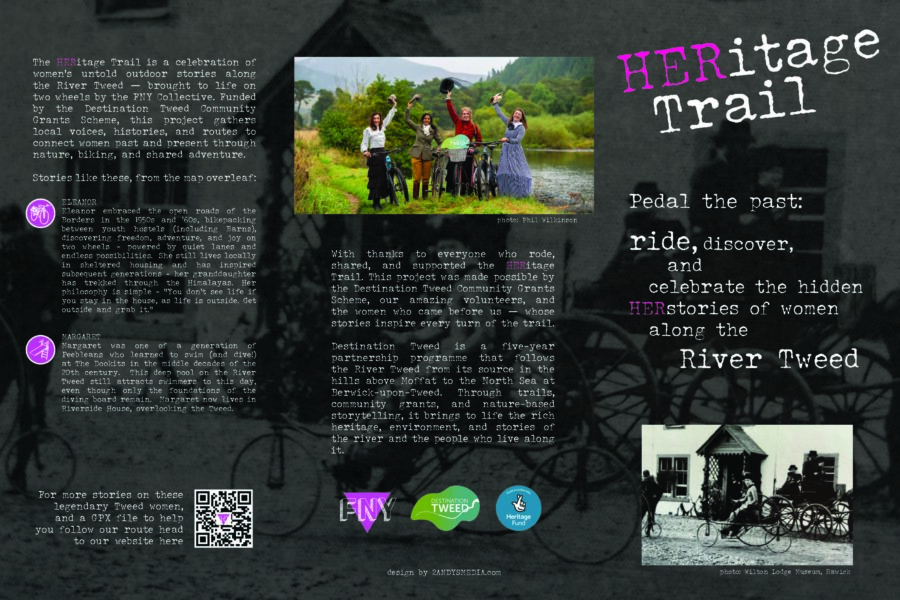 Taking these stories, Stewart and the FNY team worked together to development a HERitage Trail which wends its way through a range of special locations by the river, encouraging people to “ride, discover, and celebrate the hidden HERstories of women along the River Tweed”. A clickable map on the FNY Collective’s website provides more detail on each of these stories, from lumberjills to record-breakers and trailblazers.