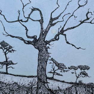 After visiting my daughter and her family between Christmas and New Year I was travelling home through the Tweed valley between Coldstream and Kelso. Late afternoon and a clear sky. Amid the seasonal hurly burly this view was, in every sense, a breath of fresh air.